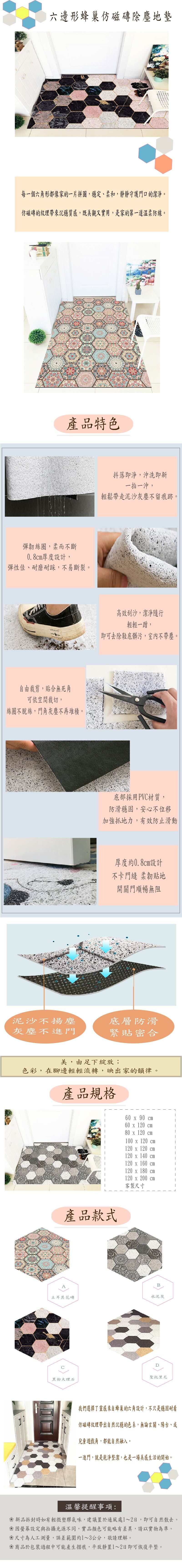 六邊形蜂巢仿磁磚除塵地墊